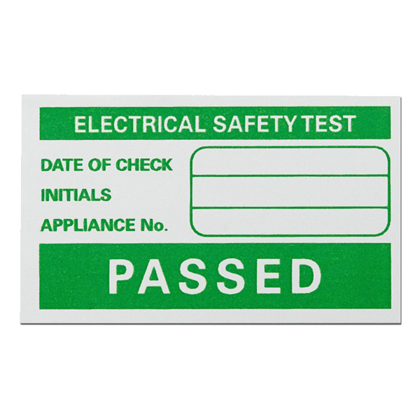 'Pass' electrical safety test labels for PAT Testing (green). These PAT labels are to be fixed to portable appliances following a PAT test.Features